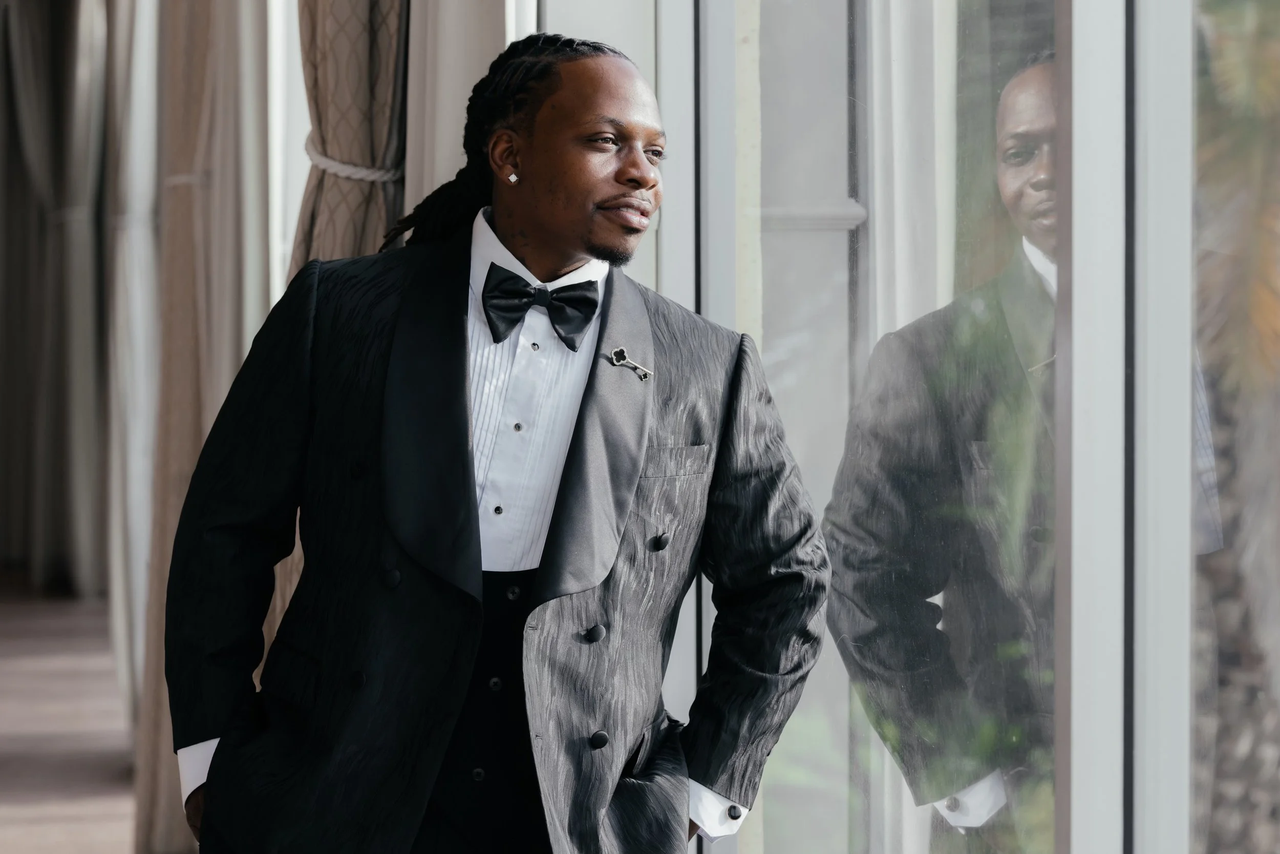 At The Groom Avenue, we create clarity and confidence for grooms and groomsmen. From timeless tuxedos to tailored suits, curated accessories, and elevated experiences, we design the moments where the groom steps forward — fully prepared, fully styled, and fully present.